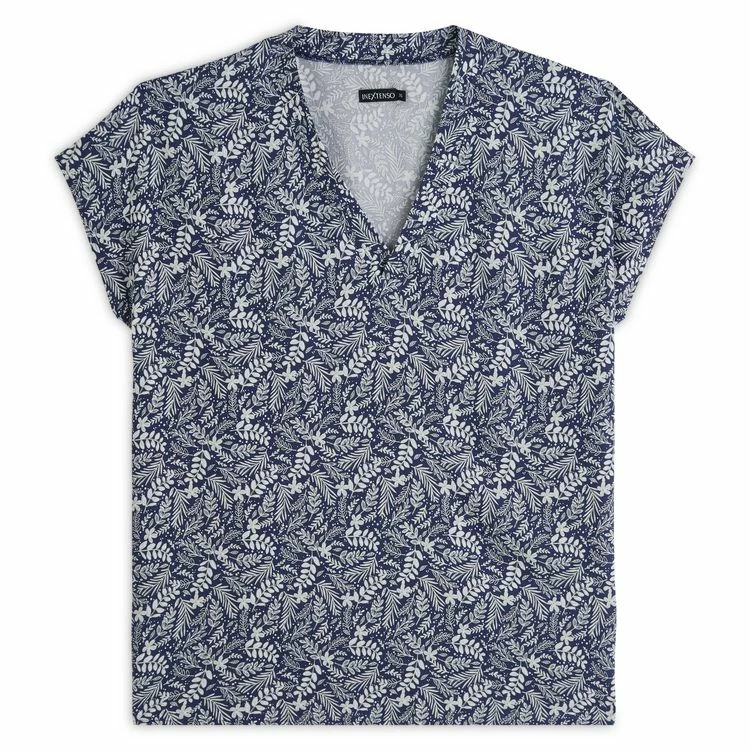Promo 🌟 IN EXTENSO Blouse Manches Courtes Col V Imprimé Feuillages Femme ⌛