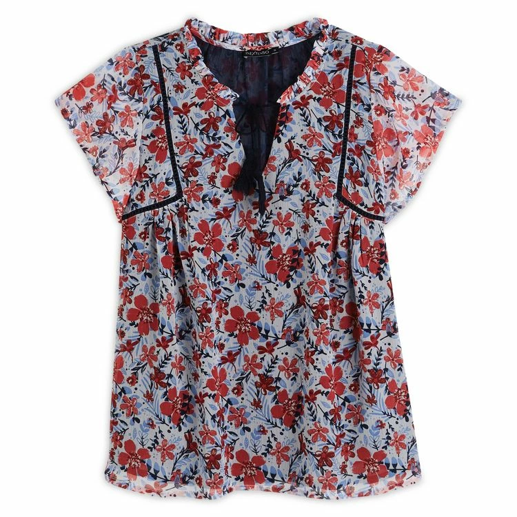 Remise ❤️ IN EXTENSO Blouse Manches Papillons Avec Pompons à Fleurs Femme 👍