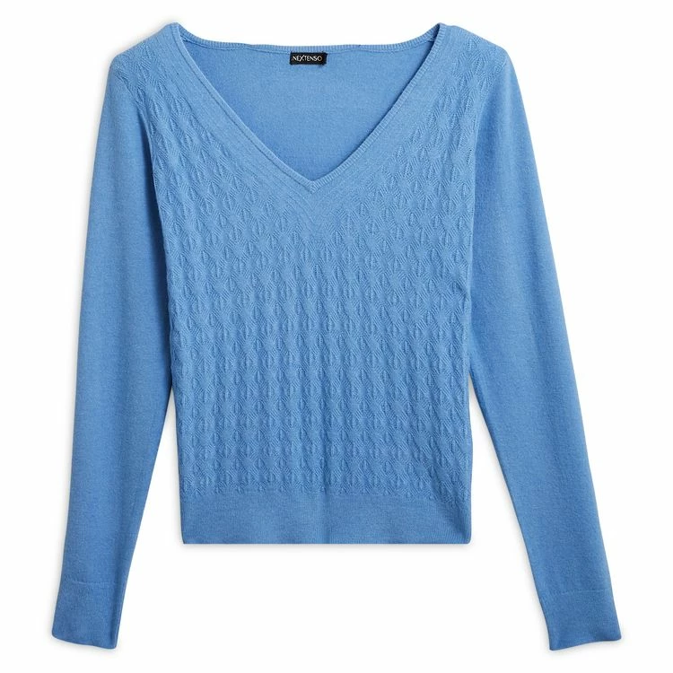 Le moins cher 😀 IN EXTENSO Pull Col V En Maille Bleu Femme 🔥